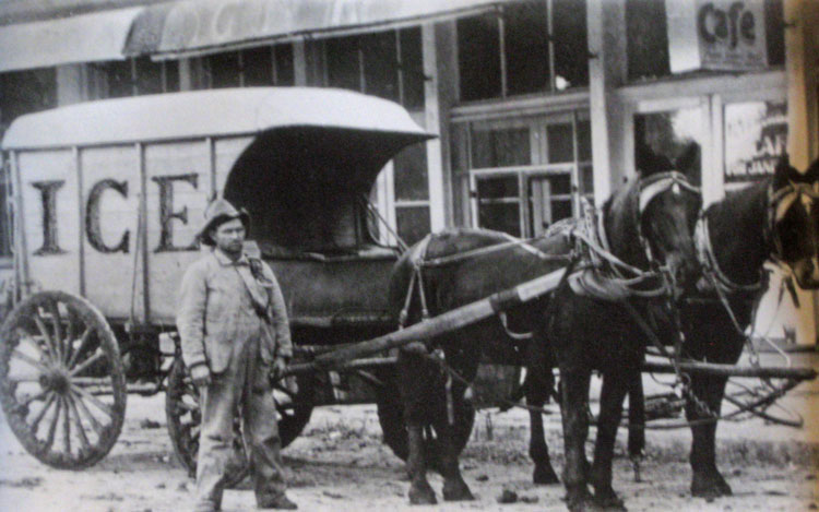 Ice truck in front of Interurban Cafe, purchased