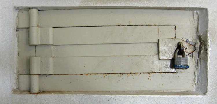The Sheriff’s wife typically did the cooking for both the family and the prisoners. Downstairs in the former kitchen is a pass-through window in the wall, through which meals were served to the prisoners. Minnie Beall Long, who lived here in the mid to late 1910’s when her father was Sheriff, wrote about many of the daily routines in the county jailhouse.