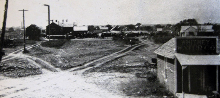 | Greenwade Gin in background, Whitney, 1908 (Whitney Water Co on right side in foreground) |