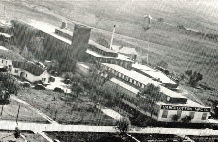 In 1901 cotton mills opened in both Hillsboro and Itasca to produce fabric from the locally grown cotton. At the time, there were only two other cotton mills in Texas. These factories provided steady work for hundreds of workers which in turn pumped money into the economy, significantly improving the prosperity of the county. Hillsboro’s products were labeled "Cowboy" and "Alamo" and had a reputation for being of the highest grade. The Itasca mill was also known for producing high quality fabrics, especially drapery and upholstery fabric, and Itasca Weavers shipped material throughout the world.